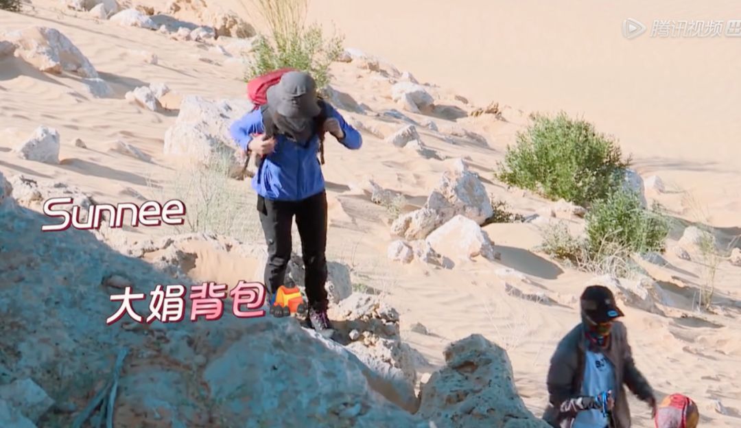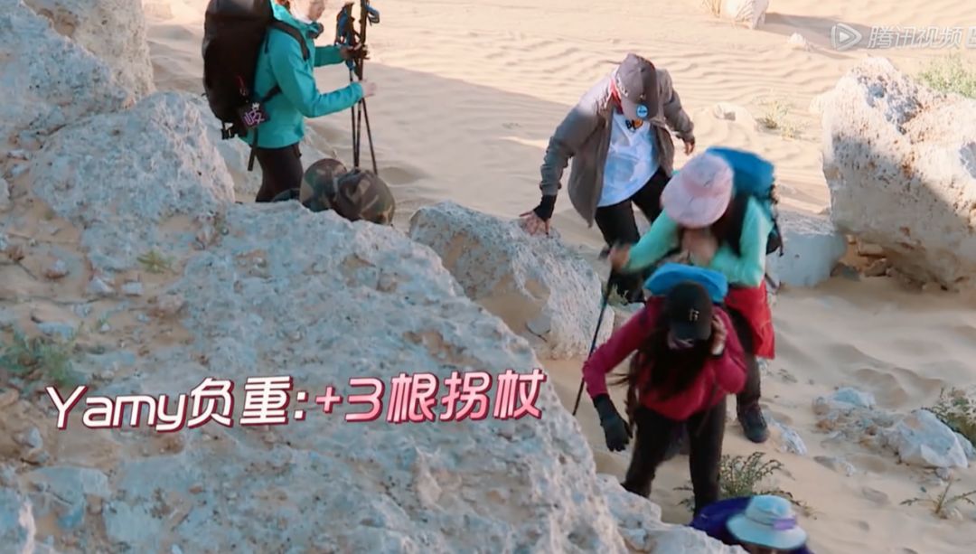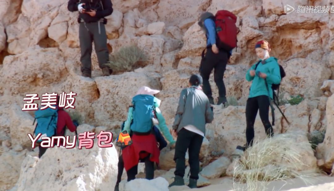 到了山脚,yamy和段奥娟分别提出帮孟美岐和sunnee背包,解决负担。