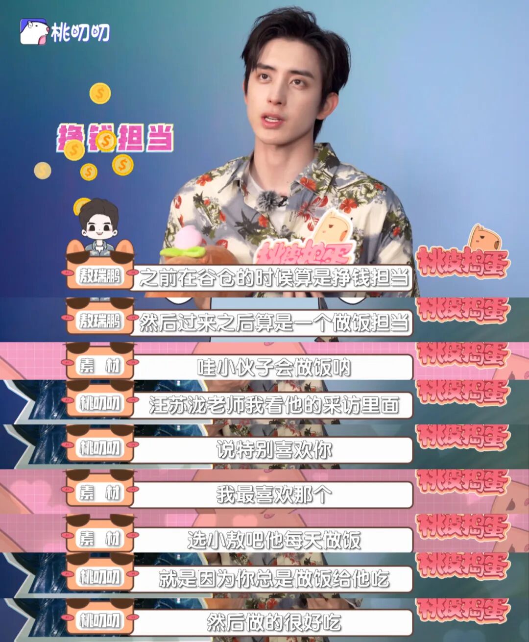敖瑞鹏:不那么卷也可以的!|桃皮捣蛋Vol.56 AKA桃叨叨 内地男星 2023-07-19 22:28:33 14 创作不易,用心坚持,欢迎请BaGua喝几杯爱心咖啡!打赏并支持本文 打赏并删除本文 敖瑞鹏:你们想惩罚我!我懂!我懂!桃皮捣蛋Vol.56作者/boki编导/小张——“家里还有谁帮我说一下呗~等会水别烧干了,加点水”——“要不先关了,然后回去你自己加。”——“也行关掉吧。”敖瑞鹏在椅子上坐定,一边进行着采访前的妆造整理,一边轻声跟工作人员询问着。看来小敖是粽子煮到一半,就被“抓”来采访了。“我之前是赚钱担当,现在是做饭担当。”(笑)“我发现其实不卷也行。大家没有被我卷到吧,有钱也ok,不用那么多钱也可以的”桃叨叨采访敖瑞鹏的时间,正好是这一季桃花坞坞民们最后一个阶段的录制,“给自己放轻松一点,就自然表现出来就好了。”小敖开始真正“享受”这个综艺录制是什么时候?卷,是想找点“存在感”?第一期就立志做卷王的敖瑞鹏,与其说找存在感,不如说是在这个以社交实验为主题的综艺中找到自己存在的意义,找一个定位,成为一个具有功能性的人。来桃花坞之前,他有给自己做心理建设,“来之前我就觉得很紧张,和自己说放轻松、放轻、松放、轻松。”干活,是敖瑞鹏缓解尴尬的方式。在节目里常常能看到小敖做饭的背影,泷哥、丹妈提起来小敖做饭都是夸赞。为了挣桃花币,游戏不被进攻方抓到,爬上树躲避。飞行来的郭麒麟说“太卷了。”放一个小时的羊,大铲特铲羊粪。偶尔放飞自我一下,牛粪投篮什么的。但如果一个人追求把事情做好,又很在乎别人的看法,就会成为内耗的开始。上周的节目里,在雪琴的提议下,几个人在冰上写自己最想丢掉的东西,然后把这块冰放生到海中。要不要在冰上写“内耗”,敖瑞鹏纠结了很久。放生结束,敖瑞鹏在一旁抠起了沙砾。雪琴注意到敖瑞鹏的心思,又带动大家完成敖瑞鹏的浪漫——成为沙滩美人鱼。敖瑞鹏狂刨沙子,激动的翻跟头,又变成了平常大大咧咧的样子。很少提出自己的要求,如果有人愿意和他一起“发疯”,能很快给予正能量的反馈。比如成为姐姐妹妹们的最佳气氛组,大家围成一个圈跳Disco。初来综艺的卷、焦虑,变成了舍不得、习惯了、开心。“大家一起待了那么长的时间,相处那么久,所以不舍得。”“为什么用'习惯了'这个词?跟大家那么长时间接触之后,我也慢慢习惯这种生活的模式。”“能够顺利的完成这一系列的录制,我也觉得大家都挺好的,从内心觉得是一个很开心的地方。“敖瑞鹏像很会活跃气氛,又很友爱的朋友。能和男生打成一片,也是可以和姐妹围成一个圈唱歌跳舞的“妇女之友”,这种友爱是无差别的。叨叨采访中一些让他尴尬的环节也不会拒绝,“你们想惩罚我!我懂!我懂!”,愿意为了节目效果“发疯一下”。合适合理,顺其自然!陆续几部古装剧的播出和出圈,敖瑞鹏在观众的心中也有了印象。前一段时间,正好《少年江湖》在播出,雨中精彩的打戏上了热搜。剧集、综艺同时播出,各种曝光多了起来。最近,又进了新的剧组。曾经敖瑞鹏会因为工作少焦虑。“焦虑就是,你没有这个东西的时候,我会焦虑我怎么没有。当你拥有了之后,会焦虑的是他会不见。焦虑,就是没有安全感。”现在的想法是顺其自然就行。《花轿喜事》待播,对于外界的看法,更多的是接受,“我当然是希望听到好的评价,正面的评价。”如果有不好的评价,“不管觉得好看、难看,我觉得说出来也是大家的自由对吧,都虚心接受。也希望大家多发发弹幕,点点赞。(笑)”2023年才刚刚过去一半,一切都在慢慢变好,自己换了一辆摩托车,渐渐的给父母更好的生活。用“心”见到的“日照金山”,真的带来了好运。未来敖瑞鹏没有什么特别想实现的大计划,只想一步一步,把事情做的更好。合理安排工作,去接合适的本子。采访结束,小敖还在操心自己的粽子,匆忙的道谢之后,打开了封闭的采访间的门。“先帮我把火关了吧!” ~ 桃妹福利 ~ 敖瑞鹏拍立得x1 ~ 参与方式 ~ 1、在看+点赞+评论你想对他说的话2、转发到朋友圈,截图发送给后台3、桃叨叨编辑部随机抽奖4、最终结果会在在评论区置顶公示 ~ 开奖时间 ~ 2023年7月25日3:00pm.(喜欢本文的话,点击顶部【AKA桃叨叨】关注公众号,这里不缺好故事~)○ 记 者 ○○ 编 导 ○ -END-视觉 | 蛋蛋运营 | 晓满、困困(实习)约稿、商务合作请联系:A2011402(微信ID)转载请联系:manxiaoyu001(微信ID)加入社群请联系:taomissdaodao(微信ID)?桃叨叨的小桃子聚集地追爱豆 · 看剧 · 聊电影 · 吃瓜↓关注【AKA桃叨叨】视频号,收获更多快乐↓ 杨 幂 张子枫 杨 洋 白 宇 王鹤棣 秦 岚 黄景瑜&李沁 马 丽 范丞丞 张彬彬 赵露思 海 清 万 茜 INTO1 (上) INTO1(下) 银河系乐团 硬糖少女303 周震南 何洛洛 IXFORM孙亦航陆 伟 张宇成 严 敏 李睿珺 张吃鱼冰雨火 苍兰诀 天才基本法 猎罪图鉴闪亮的日子 新游记 战至巅峰 萌探探探案2 创作不易,用心坚持,欢迎请BaGua喝几杯爱心咖啡!打赏并支持本文 打赏并删除本文 感谢您的支持鼓励,我会继续努力的!文章地址:用户邮箱:打赏金额:USDT 请输入数字点击”去打赏“,即可进行打赏支持本文章哦 敖瑞鹏 发表评论