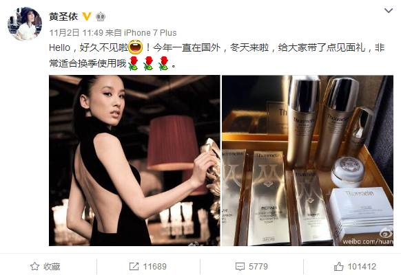 近期一直隐匿的黄圣依原来一直在国外拍戏,半年也不见微博更新一次。突然很贴心的为粉丝们推荐,梵蜜琳神仙贵妇膏。这份心意,温暖了多少粉丝!!