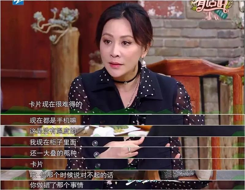 刘嘉玲在节目里很自豪地说,她的柜子里收藏着一大叠梁朝伟写的道歉卡片,她偶尔就翻出来看看,调侃梁朝伟:“哎,你那个时候说对不起的话……你做错了那个事情……”