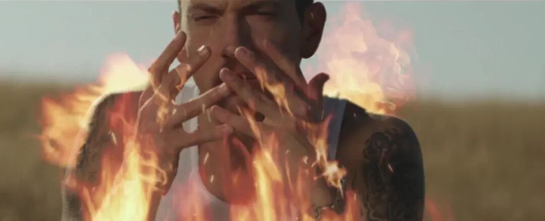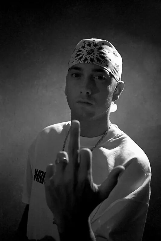 在所有的写真中,竖起中指永远是埃米纳姆的一大偏好。他象征性的竖起中指大拇指微微往外翘已经成为了埃米纳姆的一大标志。让美国之外的人们记住这张冷漠的脸,是因为那部著名的电影《8mile》。 他的经历几乎被完全翻拍了出来,但他的真实影子无处不在。在美国的汽车城底特律,一个白人少年在艰难困苦中对抗操蛋的世界。关于这部电影的由来,好莱坞著名制片人51岁的老头(Brain Grazer)布赖恩·格雷泽尔起了关键作用,他督促了剧本的产生,又找来导演汉森(Curtis Hanson),他与埃米纳姆整夜长谈,几乎了解他所有的人生事故。包括他无数次地下饶舌大战的辗转。那条划分黑白肤色、贫富两重天的八英里大道跟着阿姆名扬天下,痞子的雅号也随之一泻千里无人不晓。片名8英里取自底特律城的8英里街道之名。此街为底特律城市与郊区的分界线,也即白人与黑人居住区的界线。
