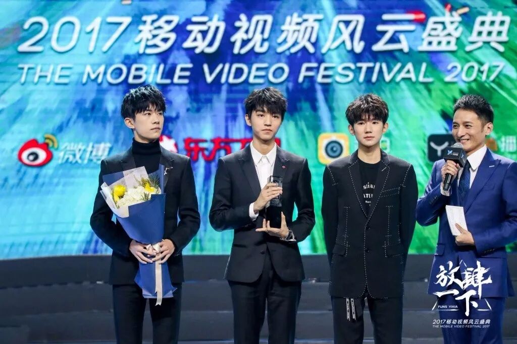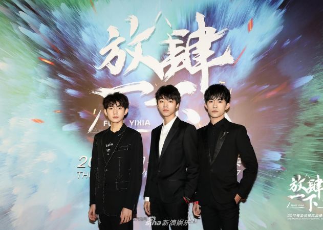 TFBOYS穿着黑色西装出席,是不是俨然有了总裁范?不敢叫他们三小只了,比维嘉都要高了!