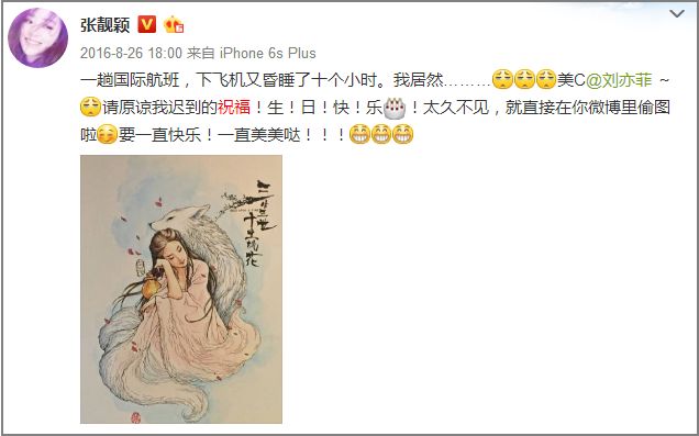 其中最要好的应该是刘亦菲,每逢生日,两位都非常走心地护送祝福。
