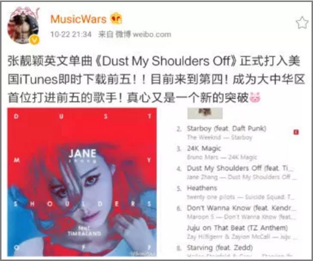 而且《Dust MyShoulders Off》的MV蝉联下载榜冠军30日,张靓颖也成为登上美区iTunes及时下载榜Top100的中国大陆歌手。