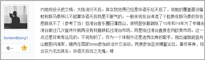张靓颖对音乐是极度执着的,不走纯流量路线,也不拍戏,而是专心做音乐,一路来包揽了很多影视剧音乐,网友对她音乐地位越来越肯定。