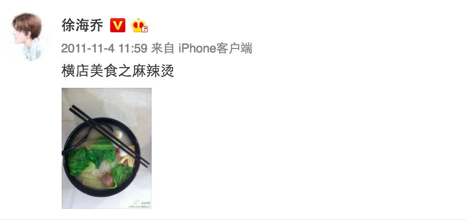 关于“吃货徐海乔”,蜀黍曾看过他与张馨予蹲着吃盒饭的皂片,当时已被这枚蓝纸婶婶的吸引住。