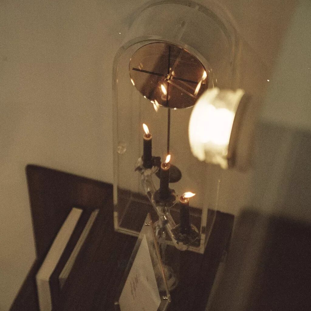 吧台上放着一个亚克力制的钟表,也是述禾从欧洲淘来的。