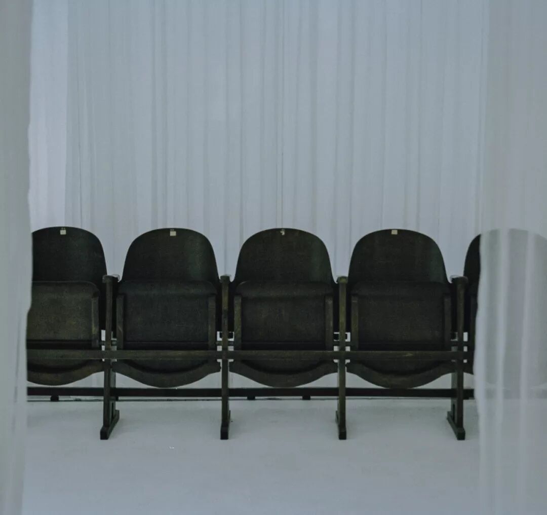 轻盈的白色帷幕随风而动,一排老电影院椅的出现,又增添了一份梦幻感。“这里是一个充满无限可能的艺术空间。”