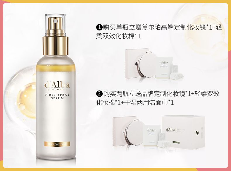 d'Alba黛尔珀空姐喷雾功能更全面,同时具有补水、保湿、抗氧化、美白的成分,非常适合春天换季皮肤问题。