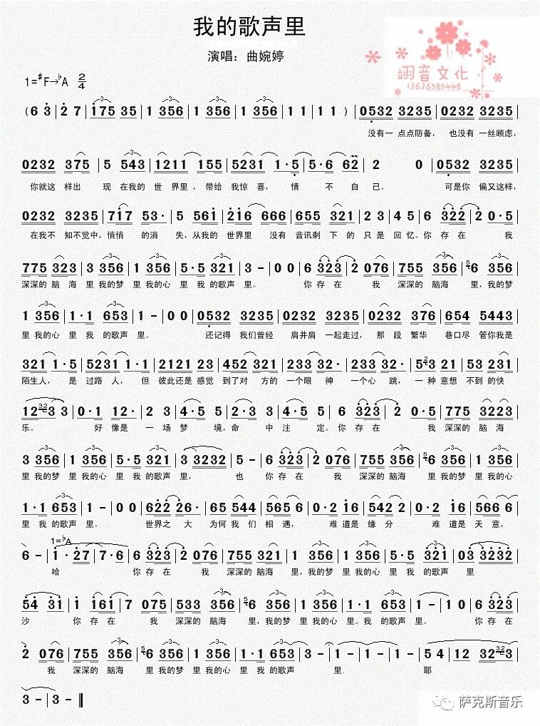 《我的歌声里》是曲婉婷在2012年创作的一首歌曲,这首歌是源于某次回中国期间,遇到一个人,这个人让她对于国内的创作音乐有了更深一层的了解和看法,这是一种奇妙的缘分与机遇,在回到加拿大后,曲婉婷便创作出了这首歌曲。歌曲的真正用意是想感谢生命中很多人,感谢他们的付出与对我好的影响,懂得去珍惜当下的一切。 |