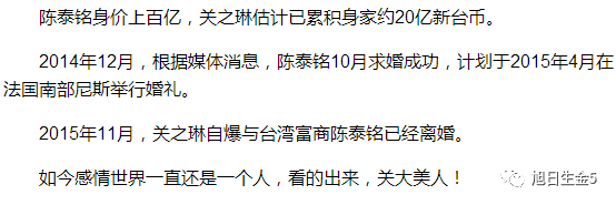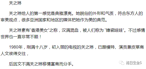 当起全职太太。因为王国旌婚后终日花天酒地,乱搞男女关系,没过半年,关之琳就与王国旌离婚。