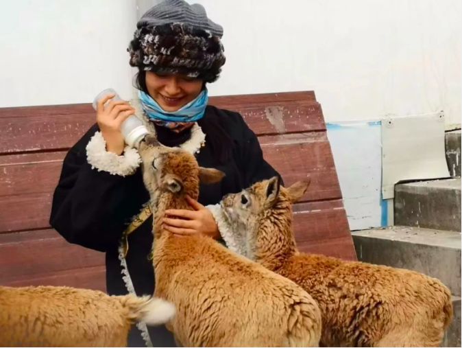她照顾保护站的小藏羚羊。