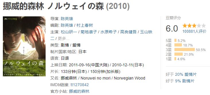 影片改编自村上春树的著名小说《挪威的森林》,从开拍伊始,便倍受关注。