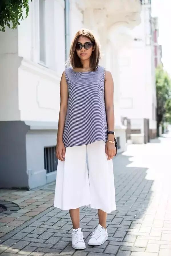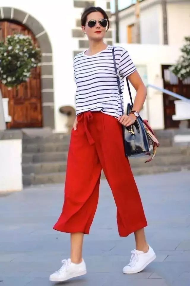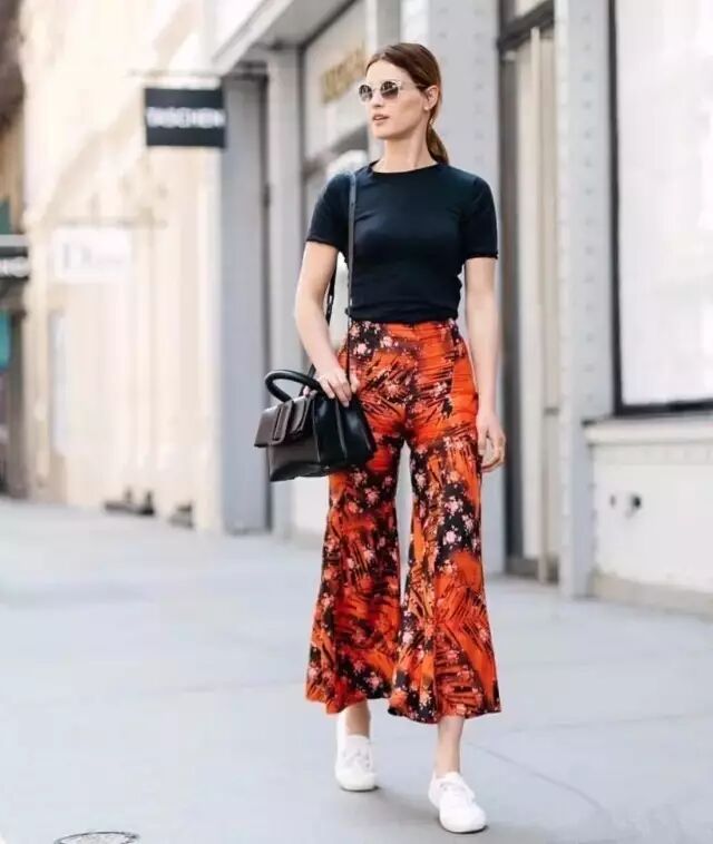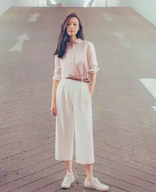 当阔腿裤搭配小白鞋,青春有活力的感觉满满,舒适加倍。▼
