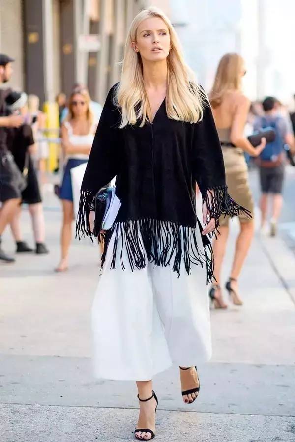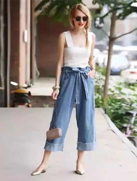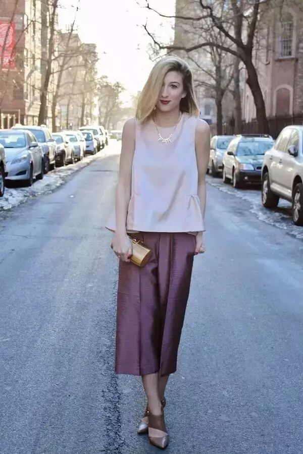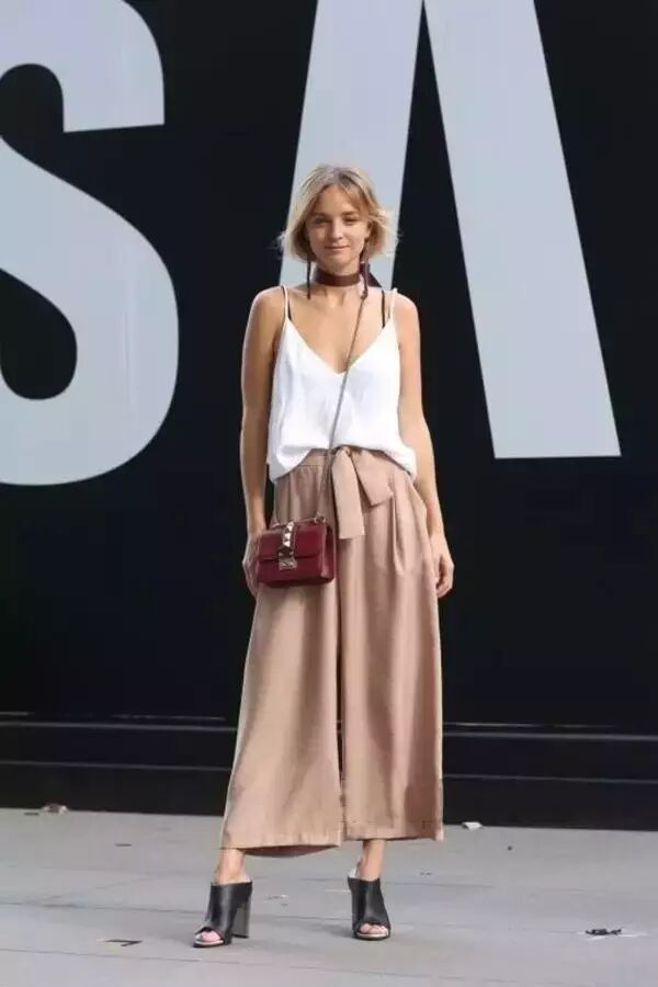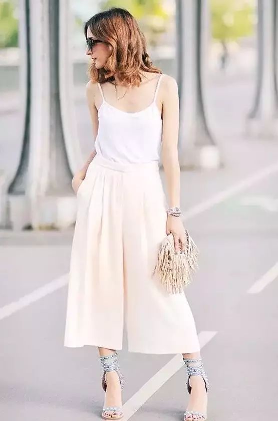 贴身的短背心搭配阔腿裤非常适合对自己腿部曲线不是很满意的小马达哦,这样就可以展示身材的优点,遮盖小缺点。▼