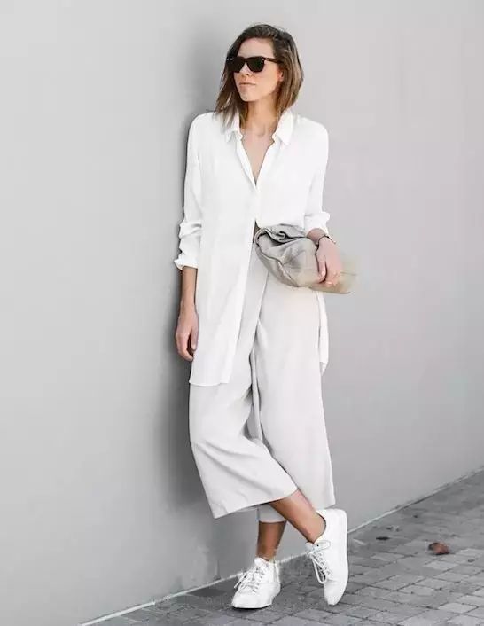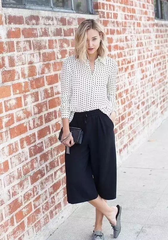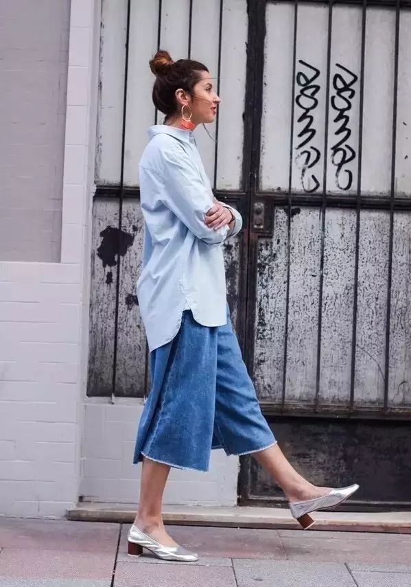 衬衣搭配阔腿裤绝对适用于上班族,舒适端庄又不会太过沉闷。▼