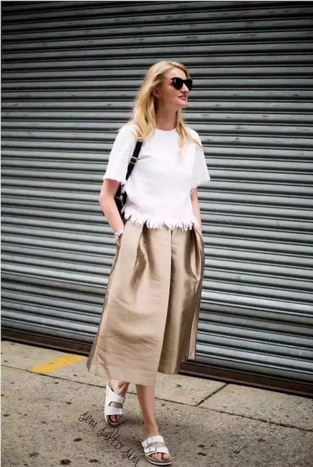 阔腿裤搭配勃肯拖鞋,元气满满的逛街最佳look。▼