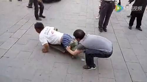 最近一则视频在网络热传:一名路人当街揭穿一名“残障”乞丐的伎俩,将他的外裤强行脱掉,发现他原来将双脚屈膝藏在内裤中,从而假扮失去双腿的残疾人士。当伎俩被揭穿后,他即迅速爬离现场。