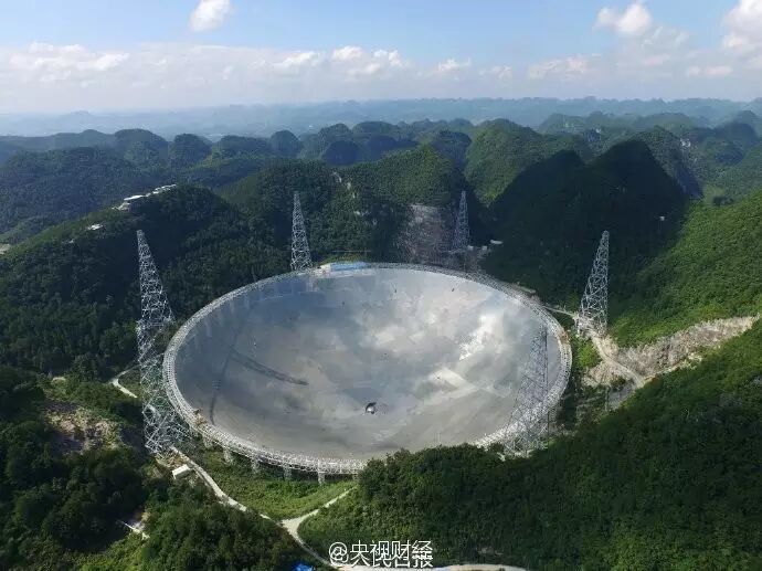 历时五年多时间,由中科院国家天文台主持、正在贵州平塘建设的500米世界最大单口径球面望远镜(英文简称FAST)主体工程完工,最后一块反射面单元今天完成吊装,这是世界上最大的射电望远镜。它能接收到137亿光年以外的电磁信号,这个距离接近于宇宙的边缘。