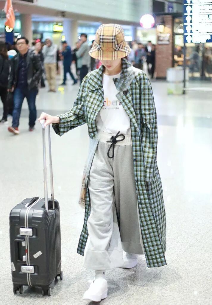 在机场还戴过渔夫帽。▼