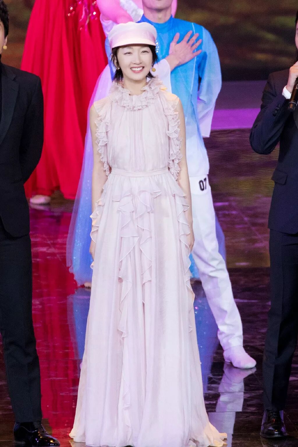 她参加第17届电影华表奖,戴了一顶粉色报童帽。▼