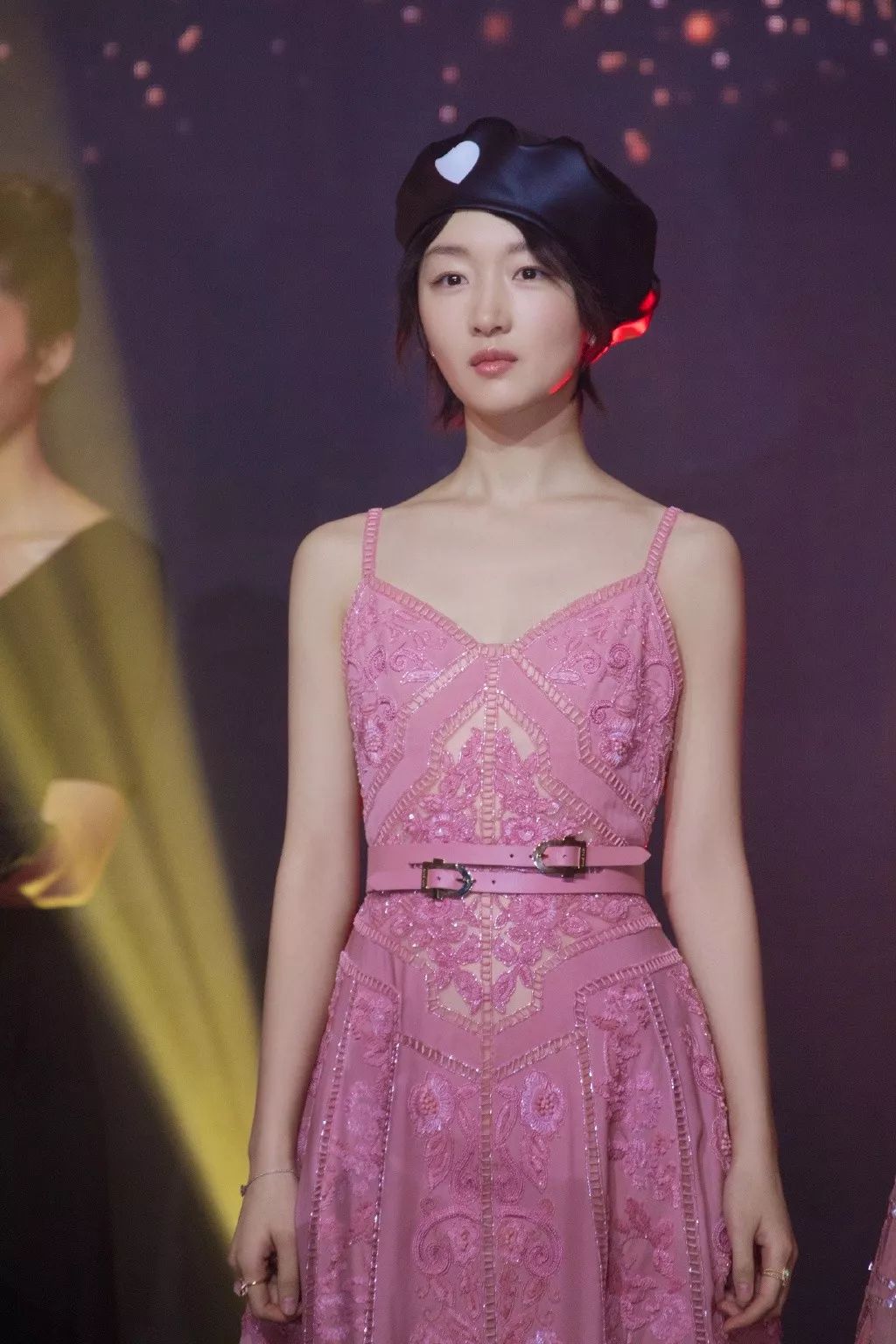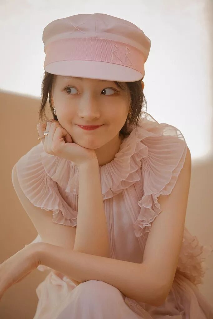 周冬雨参加华表奖戴的小粉帽。▼