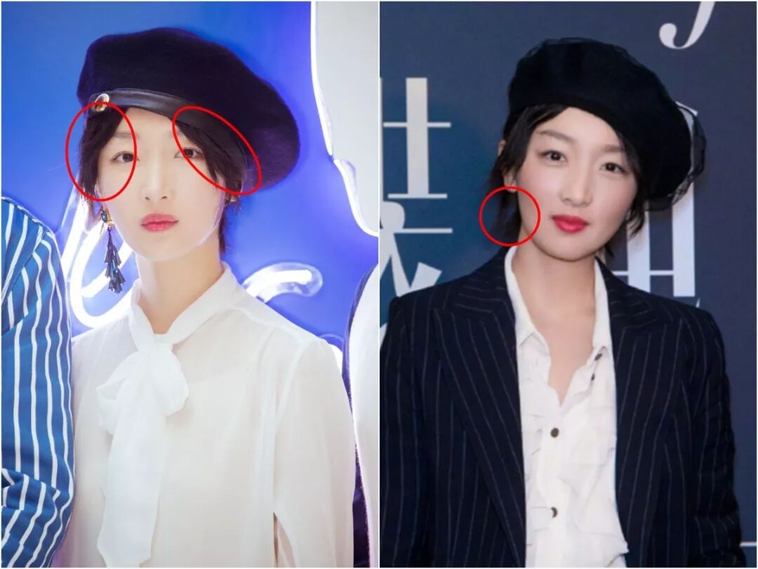 报童帽帽型比较随意,帽檐浅,露不露刘海都可以,她一般会露出两边的头发。但对于下巴尖的同学来说,两边的头发适当露多些,整体更好看。对比一下,左边头显得有点重。▼