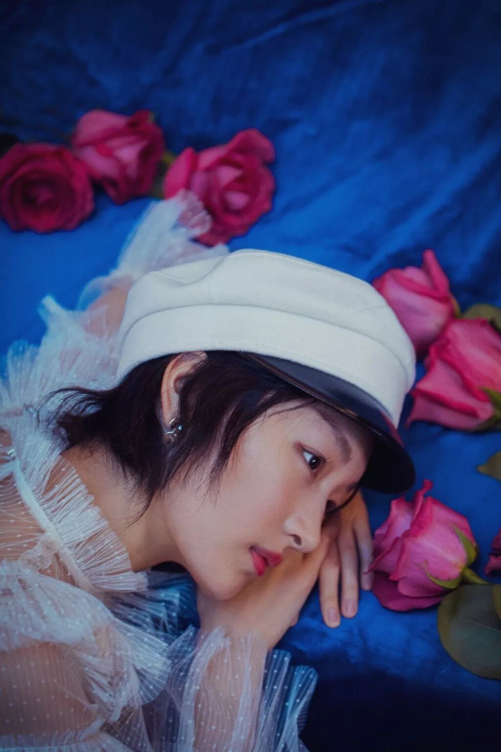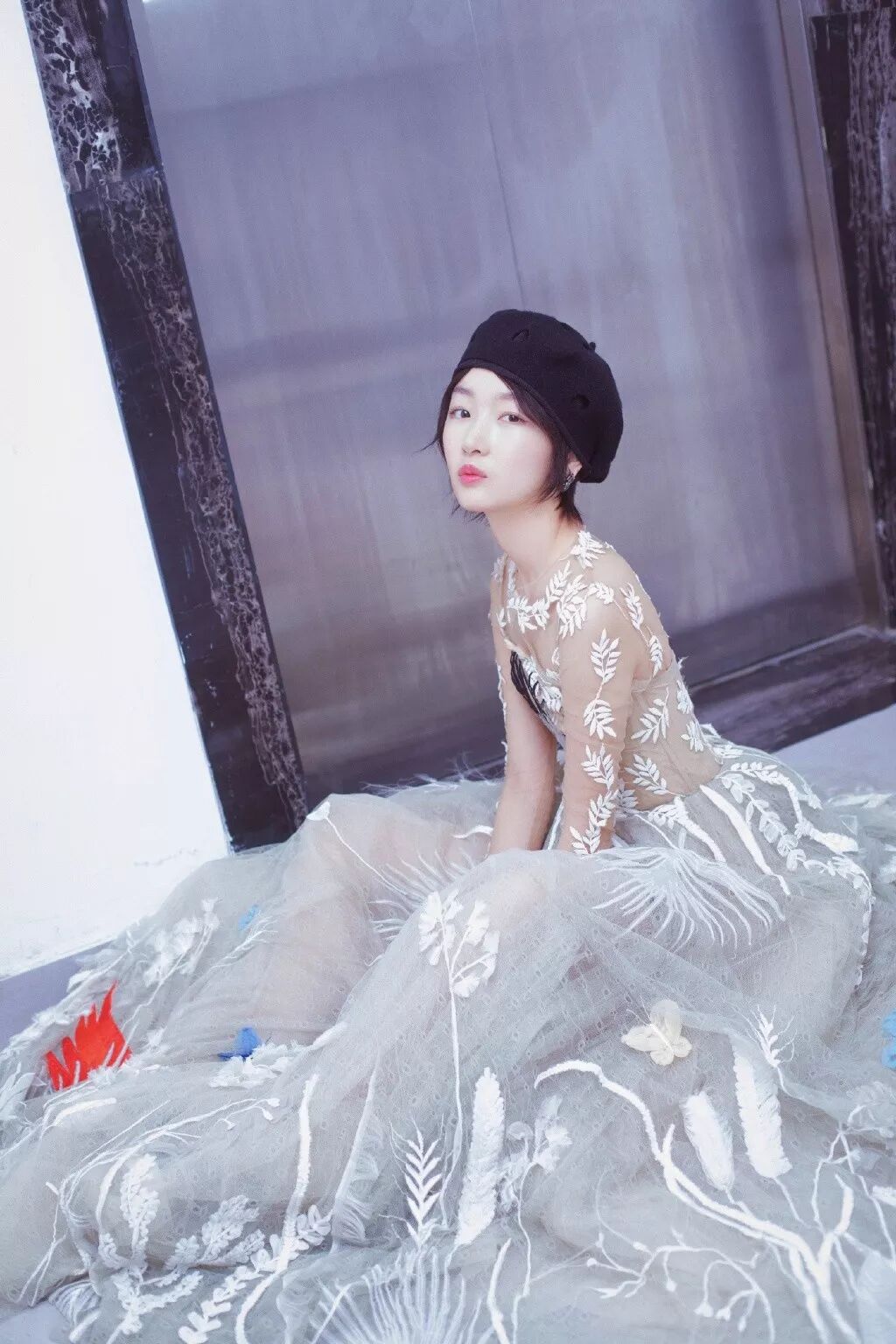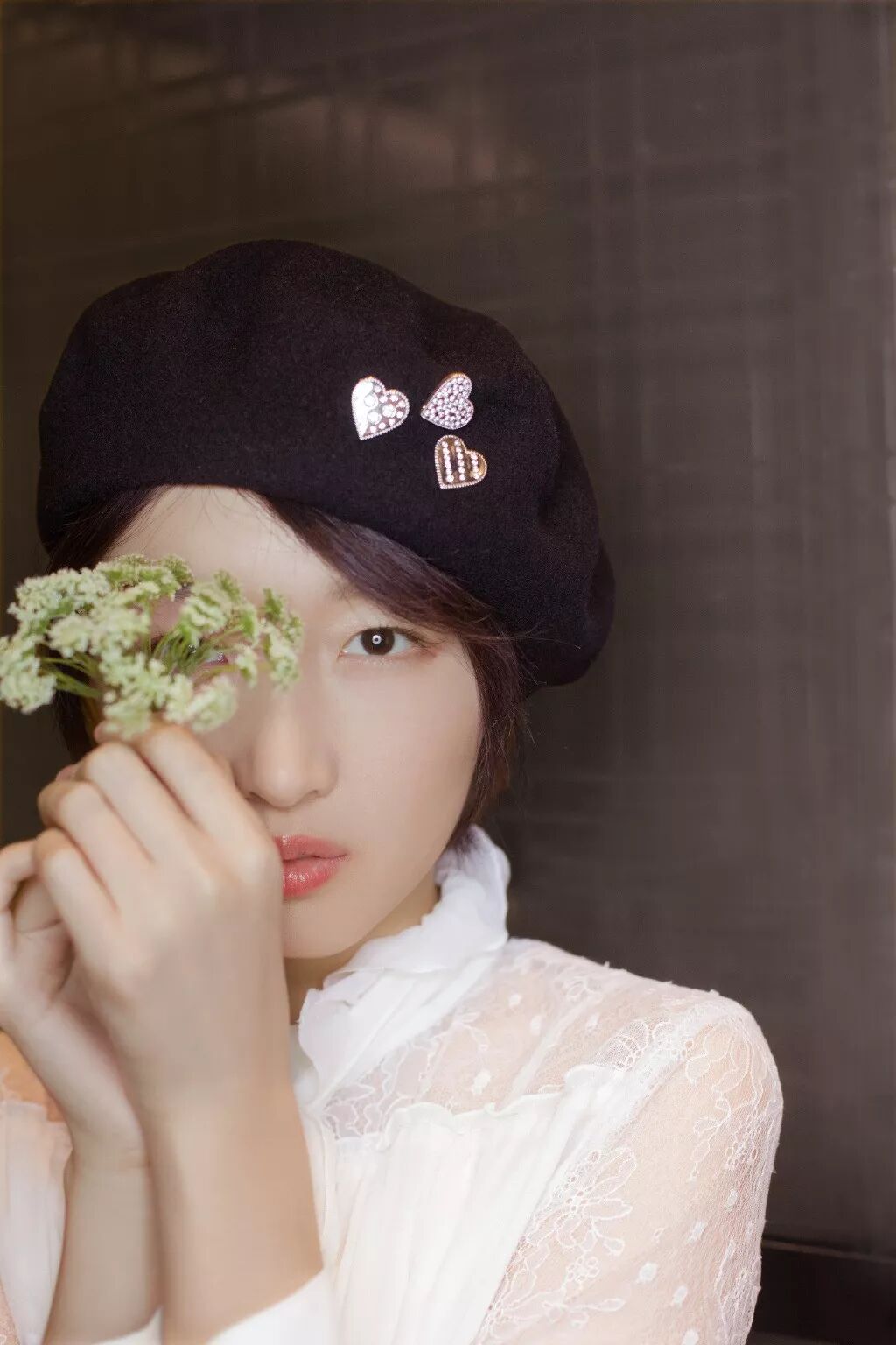 周冬雨最近参加活动戴过一顶的贝雷帽,搭配白色蝴蝶结衬衫还挺好看。▼