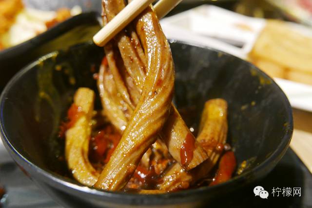 听名字根本猜不到是啥玩意儿,但其实就是用秘制香料、辣椒、花椒腌制过的鸭食管;在撸串界常见,但在火锅界就比较罕见了。