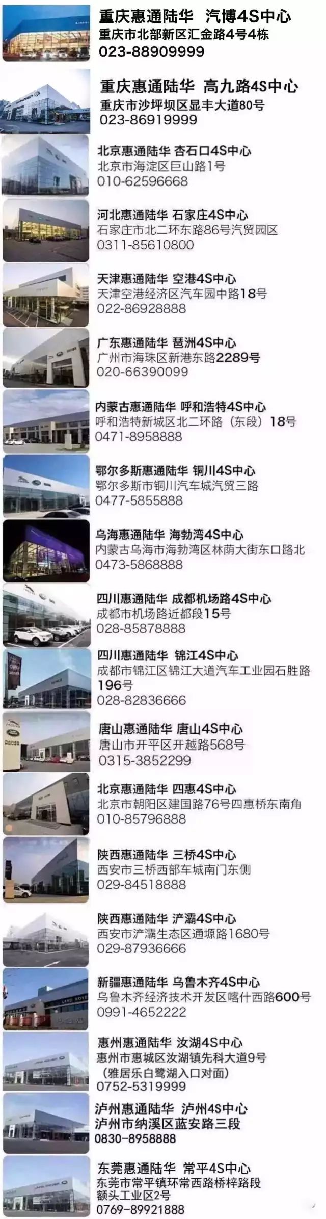 重庆惠通陆华是中国大陆地区首家获得路虎品牌销售代理权的经销商-北京惠通陆华汽车销售有限公司旗下在重庆开设的捷豹路虎4S店,自惠通陆华首家捷豹路虎4S店入驻山城以来,目前分别已建有新牌坊店、汽博店、高九路店三家捷豹路虎4S中心。2017年2月,惠通陆华在渝新建的第三家捷豹路虎4S旗舰店正式开业,重庆惠通陆华高九路4S中心的开启刷新了重庆豪车市场新地标。
