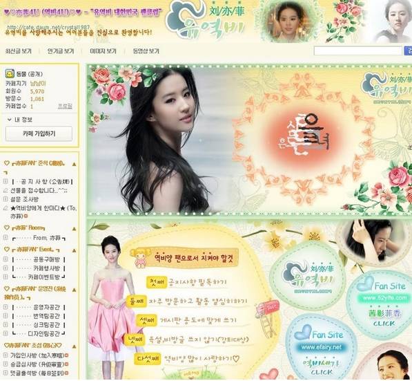 当然刘亦菲并不是蹭的宋承宪的名气在韩国火起来的,就是这么有人气。在曝出恋情之前,刘亦菲在韩国就有了自己的个站了。
