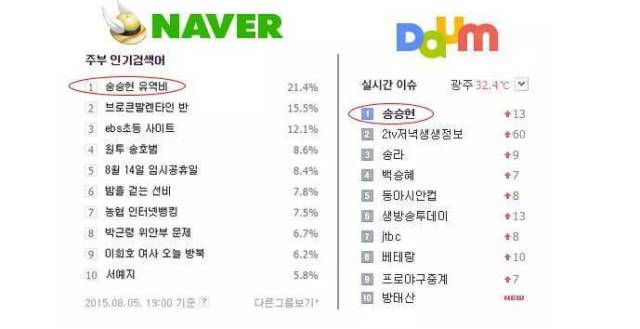 当时刘亦菲跟宋承宪曝出恋爱的时候,刘亦菲还登上了NAVER的搜索第一。