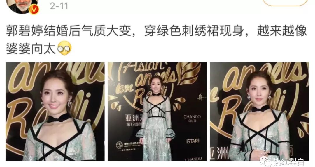 郭碧婷为什么甘愿被婆婆向太打扮成贵妇? 她刊 港台女星 2020-02-26 19:27:06 820 创作不易,用心坚持,欢迎请BaGua喝几杯爱心咖啡!打赏并支持本文 打赏并删除本文 点击上方 蓝字 ▲ 关注订阅 她刊欢迎转发到朋友圈文 | 安小鹿 葛怡然本文转载自微信公众号“桃红梨白”ID:geyiran666最近郭碧婷和向佐,在日本逛街被人偶遇了。 据说小两口这段时间,一直在积极寻找口罩。感觉已经有段时间没见到这对小夫妻了。 要知道,这一对可是去年几乎全年的热搜包年VIP用户啊。 从谈恋爱到结婚典礼,甚至婚前体检这种私密话题,都在广大观众面前演绎了一大圈。很长一段时间,甚至让大家有些审美疲劳了,直呼:“真的不想再在热搜榜看到这一对了!“去翻了下他们最近的照片,忽然发现:郭碧婷结婚之后在外形上,真的改变很大!尤其是和向佐在视频里同框的这一张,感觉两人居然已经开始有点“夫妻相”了。要知道:结婚前郭碧婷和向佐一直被外界称为“美女与野兽”。 倒不是说向佐长相有什么问题,主要是郭碧婷即便放在女明星里,也算是很漂亮的。辨识度很高,主要是清纯。 黑长直、皮肤白,身材也刚刚好又瘦又高挑,算是“直男杀手”的代名词。所以在当年“顶流电影”《小时代》里现身后就爆红了,基本本色出演了长发及腰的校园梦中情人南湘。但这也是她到目前为止,最出彩的一个角色了。 之后也陆续有拍戏,但要么就是造型太雷人、要么就是演技太尴尬,努力演了一圈依然只是个二线小明星。长相嘛是真的好看,但真的当演员,就是“木头美人”一个,缺乏灵气,难挑大梁。 加上郭碧婷本身的性格也不属于能左右逢源的类型,想进一线还是比较困难的。 但也是这份长的好看、家世清白、又不是特别红的背景,让她成了向太眼中的“香饽饽”。向太是谁? 她在香港娱乐圈算是大姐大式人物。向太的性格,有一点最突出:那就是爱憎分明。从她对待张柏芝等人的态度就能看得出来,从不藏着掖着。 她身上有一种绝对不会委屈自己的气场,这气场来自她跟老公向华强白手起家的底气,拥有夫妻创业成功的家庭里女主人特有的话语权。当然,也来自财大气粗。香港有钱人很多,豪门阔太也很多,但是跟那种传统行业如船舶地产起家的老钱家族里的女人们相比,向太身上明显多了江湖气。 因为她是风风雨雨摸爬滚打出来的女主人,阅尽千帆,识人无数,段位老辣,所以在挑选儿媳妇的时候,自然更有一套标准,或者说,这种性格的婆婆,会习惯性掌控局面。过往感情经历肯定不能太丰富,回看向佐之前的几任女朋友,没一个被向太承认的,管你爱的多高调,妈妈说不行就不行。可到了郭碧婷这里,几乎就是什么都合心意的选择。 混血好看的长相可以优化下一代基因、出道这么多年总共也就和冯绍峰传过一次绯闻,感情经历单纯到八卦小报都没得写、性格比较逆来顺受,也不是事业心很强的类型。 请问,还有比这更符合强势婆婆要求的完美儿媳吗?毕竟是连婚礼都全权负责的人,小两口一有什么动向,她比工作室发声的还快。所以婚后,或者说自从和向佐正式在一起开始,郭碧婷的变化就慢慢开始了。 之前她基本穿衣服都是偏好纯色和素色,整个人清纯的不得了。即便是参加时尚或者品牌活动,也不会做太过于花哨的造型,珠宝配饰更是不常在她身上出现。可现在再看看,郭碧婷不知道从什么时候开始,穿衣品味已经越来越“向太化”了。 复杂亮眼的果绿色连身裙,配上存在感极强的两枚大耳环,这样的郭碧婷第一眼还真的不太敢认。其他几次现身也是,身上的穿搭单品从简单大方的基础款,变成了贵妇标配的闪亮奢华大礼包。 整个人扑面而来就是一股“富丽堂皇”的气势,特别符合婆婆们最爱的俩字:喜庆!越来越多的花色和珠宝,开始在她身上出现,大色块、明艳感、复杂设计堆一身。 贵气是贵气了,但总感觉现在的郭碧婷倒是少了几分曾经的仙气。难怪大家纷纷在网上发表疑问:郭碧婷现在也打扮的太像向太了吧?因为看一下向太的造型,基本就是暴发贵妇风,这满眼的大色块、明艳感集合于一身。向太还特别喜欢珠宝,尤其翡翠彩宝之类,经常就是大克拉上身,基本上写满了两个字:有钱。郭碧婷在社交媒体上po出新做的指甲。 大家都觉得这个风格变化挺大,一条评论一语道出真相: 有了现在这个婆婆之后,这些造型只会越来越多的。感觉向太不仅关心儿媳妇的日常生活,连带妆发造型也是时常要提点一下。 去年12月1日,郭碧婷在微博上发了一张自己染了红发的照片,看起来很满意自己的新造型。哪曾想向太火速在评论区报道,嘴上喊着“乖乖媳妇儿”,但很明显对小郭这个红头发十分不满意,一边说:下次一定要问一下我的同意吧?然后到了12月16日,短短15天的时间,回到台北参加家庭聚会的郭碧婷,就真的如婆婆所说的,乖乖换回黑色头发了。这种听话的儿媳妇,天底下所有婆婆应该都喜欢吧……现在再看他们结婚当天这张大合照,向家三人都是满面春光,郭爸爸若有所思,而郭碧婷简直就像个单纯傻白甜。其实这一切,在他们第一次在综艺里认识的时候,就初现端倪了。 从见郭碧婷第一面开始,与其说向佐对郭碧婷一见钟情,不如说是向太一眼相中了这个儿媳妇。郭碧婷和向佐,从恋爱到结婚,男方一直像是一个听妈妈话的男孩子。而郭碧婷呢,婚礼中只有父亲出现,原生家庭母亲的缺席和一个存在