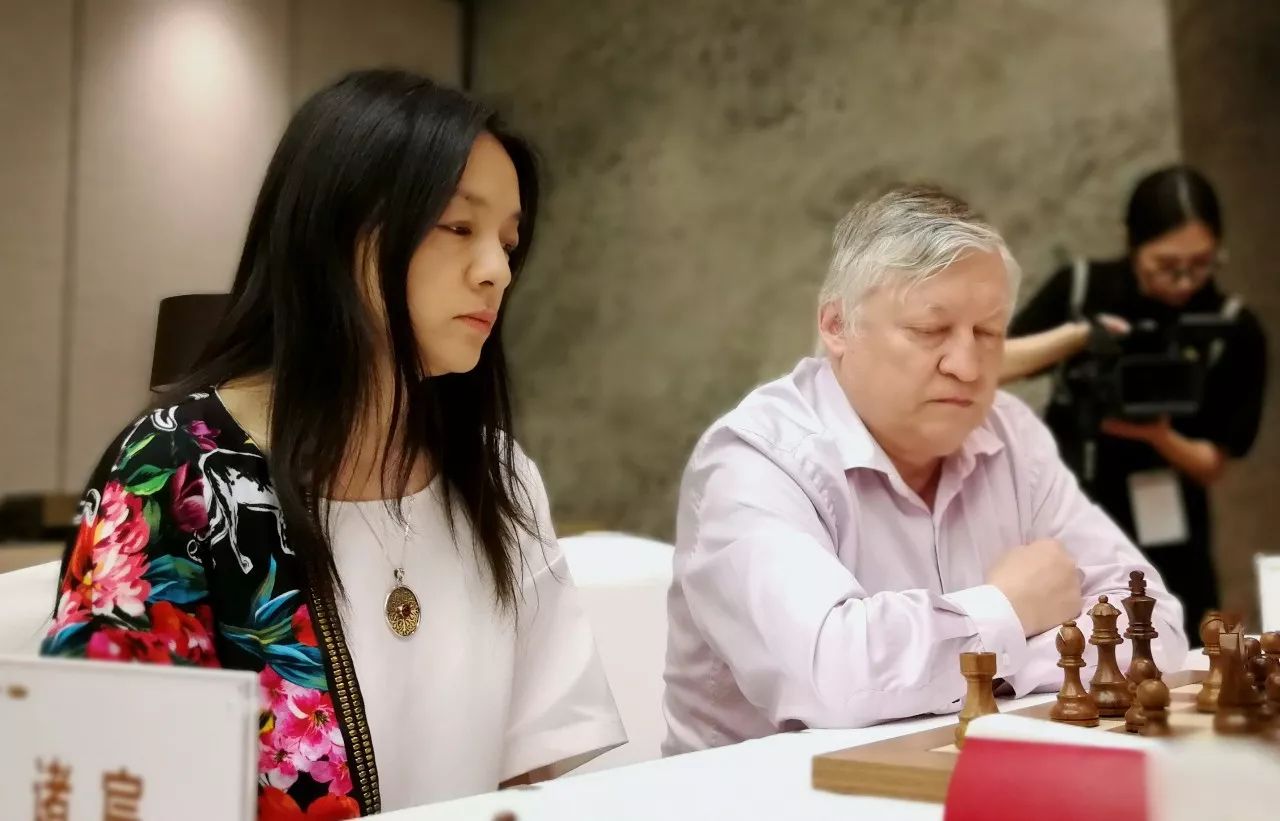 诸宸和卡尔波夫棋风相近,赛前很多人都很看好这对“棋王棋后”组合。没想到两人今天发挥有失水准。首盘棋,两人在均势的后兵残局中因时间紧张出现闪失,遗憾落败。第二盘棋,诸宸说她没有完全理解卡尔波夫的意图,选择的招法与卡尔波夫的战略有点相悖,最终两人再度陷入了被动局面,又失一城。
