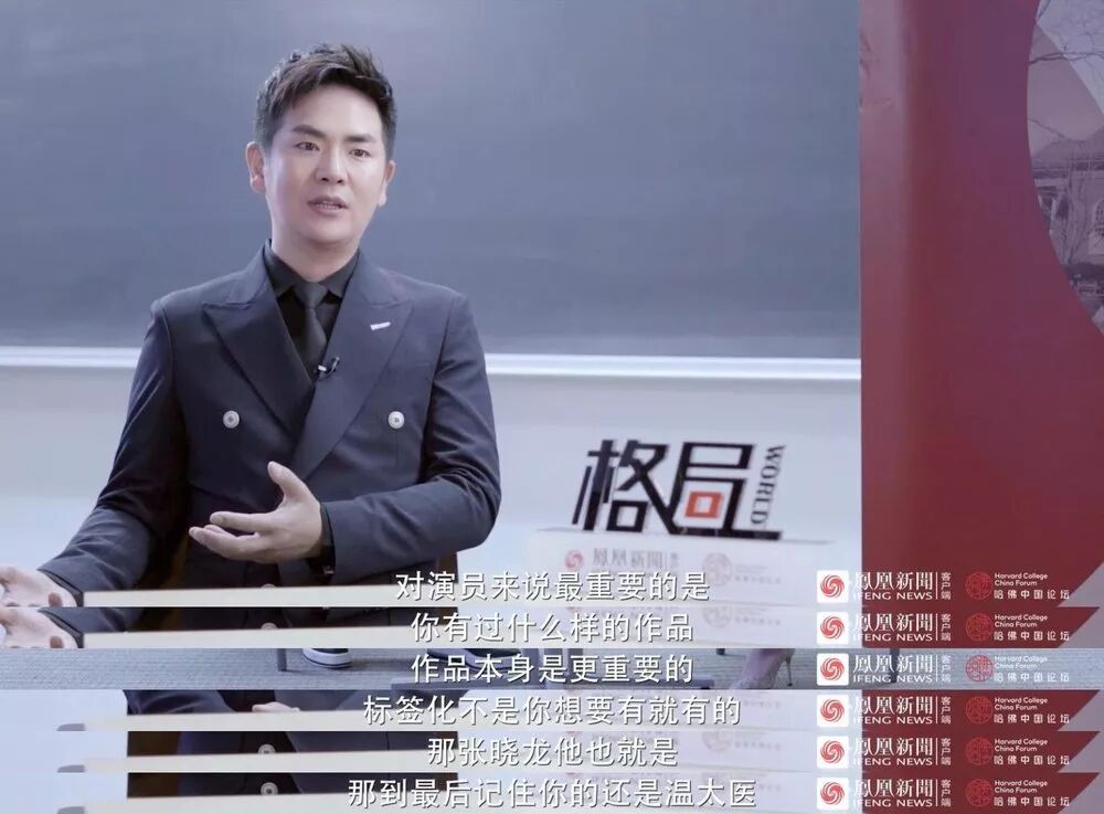 张晓龙:对。其实我刚刚在论坛里面在聊,说很多人可能都不知道张晓龙这个名字,但是他们都知道温太医。也有媒体问说你不觉得悲哀吗,人家不知道你的名字,但知道温太医,我说不会。其实到我七八十岁的时候,他们还在叫我温太医的时候,我会觉得我这一生有一个很好的角色。很多演员他非常红,但是你就不知道他演过什么角色,所以我觉得,对演员来说最重要的是你有过什么样的作品,作品本身是更重要的。记住一个角色,是记住了这个作品,标签化不是你想要有就有的,你要有这样的作品。你比如说六小龄童先生,他有《西游记》,然后赵薇,你怎么样都会想,就是她的小燕子,那张晓龙他也就是,我后边演了很多,有反派,演了盲人,演了各种挑战自己的角色,那到最后记住你的还是温太医。我觉得你有这样的机会,才可以让人记得住。