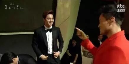 而在2015年的百想艺术大赏颁奖礼现场,秀智所属社JYP的社长朴振英还跟李敏镐问好,这个握手看起来真是意味深长。