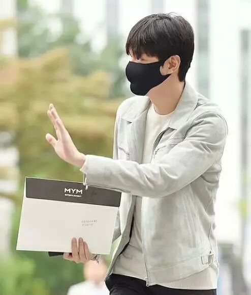 欧巴戴着黑色口罩,一如既往的帅气,现场也有百余名粉丝送敏镐欧巴入伍。