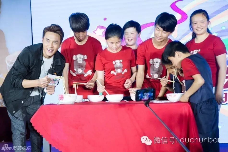 太阳村小朋友喂杜淳长寿面 送亲手栽培的花卉