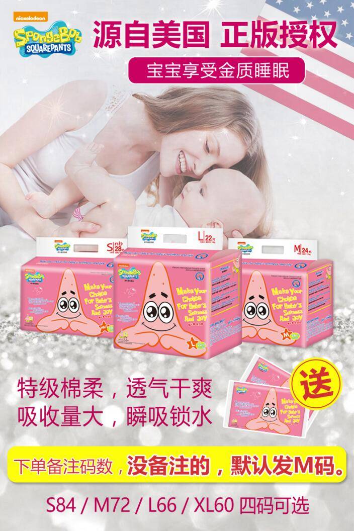 美国海绵宝宝正版授权,S84/M72/L66/XL60,送试用装!