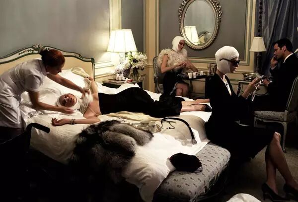 Franca Sozzani 不像 Anna Wintour 那么商业,在时尚媒体领域她更像个艺术家或社会学家。她善于用图片讲故事,并且这些故事都是当下的社会热点话题。2005 年的整形专题,她以时装纪录片的形式记录了血淋淋的整容现场。2010 年 BP 石油泄漏后的反映海洋环境问题的时尚大片,她又让模特穿着当季时装躺在乌黑的海滩上。这些时装大片虽然颇具争议性,但就像 Franca 所倡导的,时尚并非只是肤浅的衣服首饰,也可以作为批判社会问题的利器。