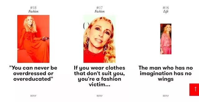她是全球公认最伟大的时尚主编之一,从 1988 年开始,她执掌意大利版《Vogue》长达 28 年。她关注各种有争议的社会话题,并用时尚艺术的方式呈现出来,这样的做法让意大利版《Vogue》摆脱了时尚商业类杂志的名头,成为全球时尚爱好者的时尚圣经。