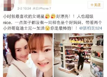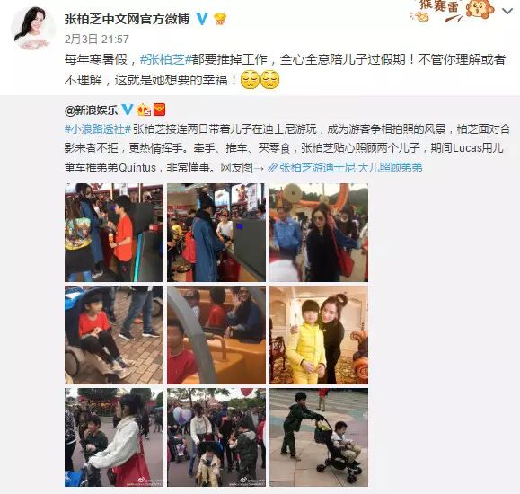 在张柏芝官方粉丝团的微博上,说每年寒暑假她都会推掉工作陪儿子过假期。