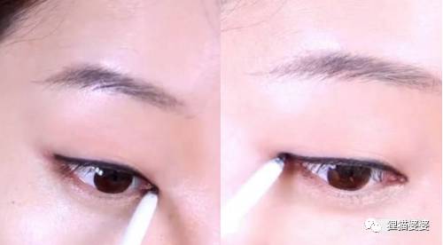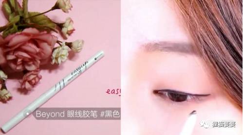 紧贴着睫毛根部画眼线,要尽量细一点。