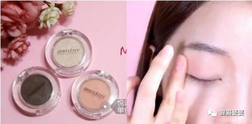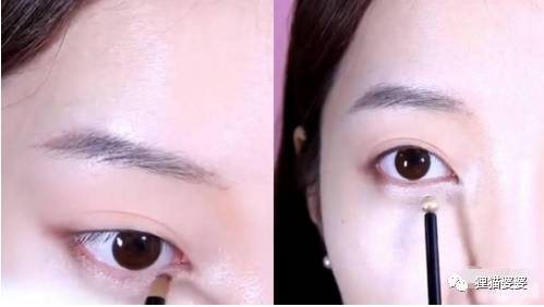 内眼角和下眼皮点着涂亮一点的眼影,