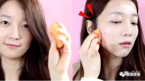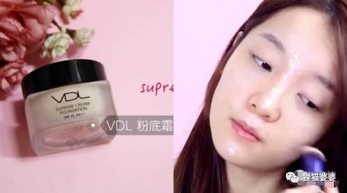 用化妆刷稍微沾点V粉底霜,薄薄的涂全脸