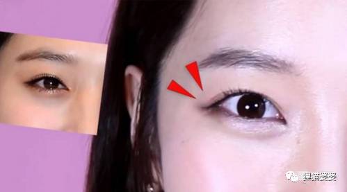 然后用刷子粘深色眼影,画尖尖的内眼角,如图