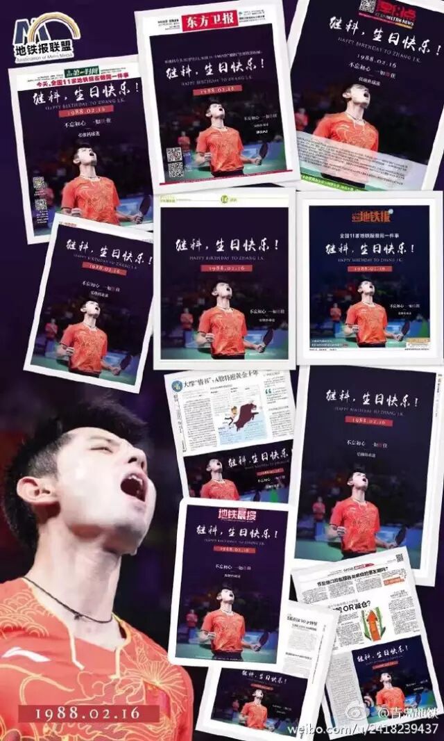 他的球迷们在家乡《地铁晨报》的头版和内页两个版面的整版为他投放生日广告!