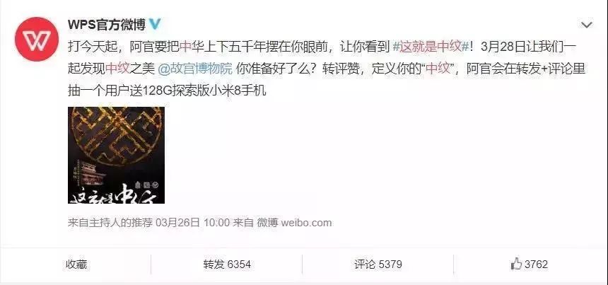 故宫通过与WPS一起合作举办了一场“发现中纹”之美的活动,为传统文化开创了现代化的传播发展之路,借助互联网技术,让传统文化进入寻常百姓的生活,成为一个用新方式发扬旧文化的典型。此次的跨界合作,可以说是意义非凡了。