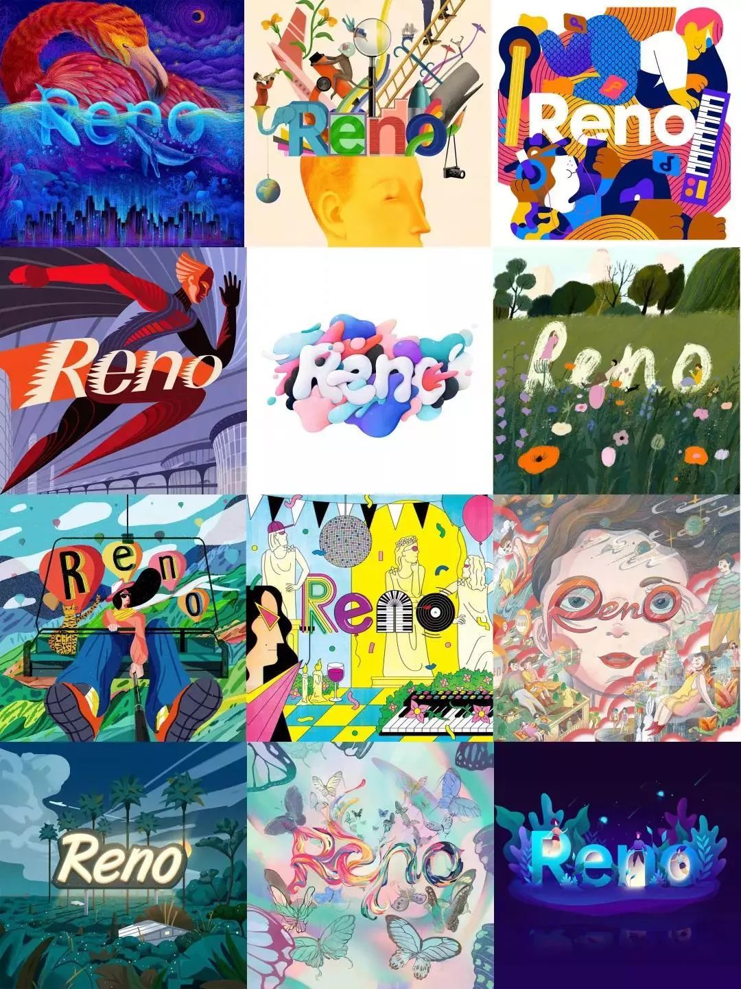OPPO为了给全新子品牌Reno造势,有别于以往的新品发布,不再以为的堆砌产品配置等数据,而是邀请了十三位艺术家,以充满想象力的插画来表达对Reno的理解。