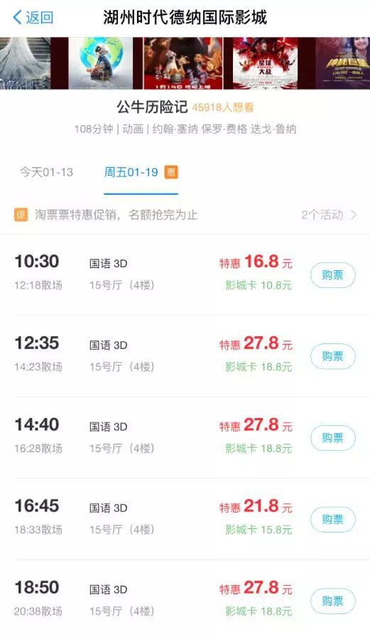 淘票票影城卡特惠预售15.8元起!
